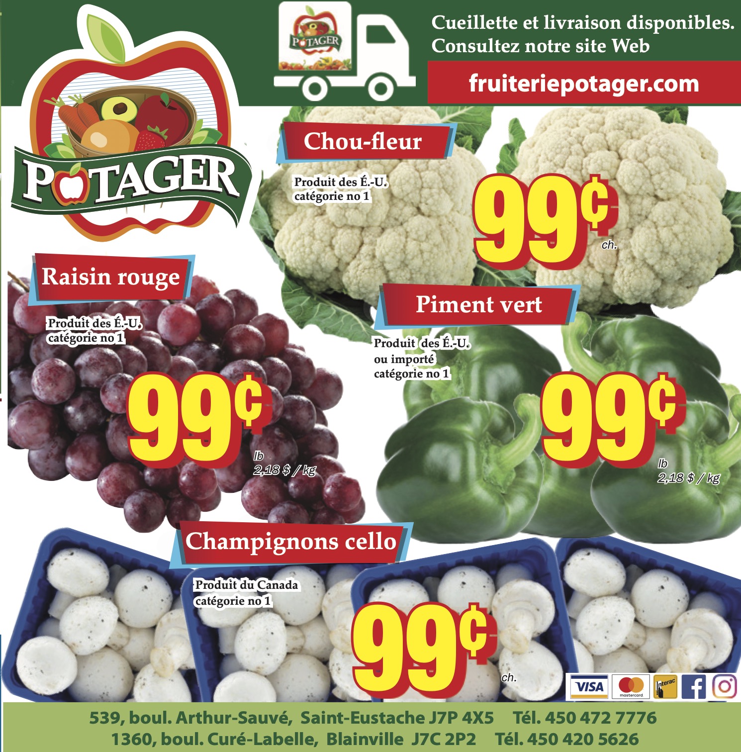 Découvrez notre variété de fruits et légumes frais. Ici, nous sélectionnons personnellement chaque aliment pour vous offrir un maximum de qualité à des prix très concurrentiels. Envie d'une fruiterie classique à l'accent international? Venez nous voir et faites l'expérience d'un service d'exception.