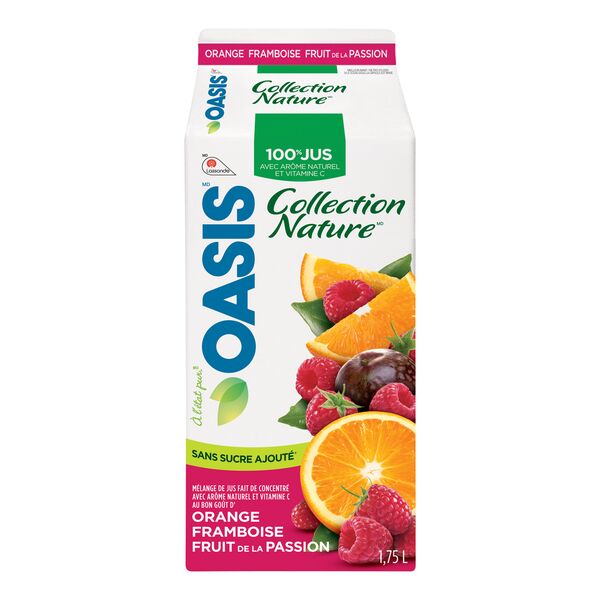 / Oasis Mélange de jus d’orange, de framboise et de fruit de la passion, Collection Nature 1,75 L